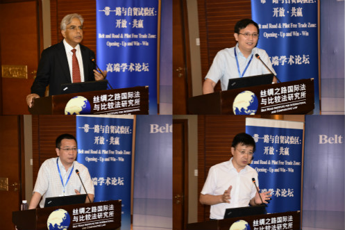 大会发言阶段由李万强教授、王小军主任主持。韩国高丽大学江南官方(中国)总部教授、英国《曼彻斯特大学国际经济法学刊》主编Asif H. Qureshi先生,华东政法大学中国自贸区法律研究院常务副院长贺小勇教授,上海市昊理文律师事务所主任合伙人赵德铭律师、北京市康达(西安)律师事务所执行主任廉高波律师分别发言。Asif H. Qureshi教授发言题为“东北亚货币关系的国际法律问题”,主要从法律视角阐明东北亚中国、日本和韩国之间的货币关系,特别探讨了国际货币基金组织(IMF)在区域货币合作方面的法律能力和监管能力,包括经济危机时期的收支平衡以及货币协调、外汇干预和国际货币应承担的责任等问题。贺小勇教授发言题为“自贸区国际水准法治营商环境的构建”,分享了上海自贸试验区的许多成功经验和典型案例,具有很强的借鉴意义。他还从若干方面对自贸试验区法治建设的前景作了展望:积极推进政府法治建设,运用以开放促改革的理念构建政府法治,从行政驱动转变为科学立法引领,强化商事审判思维模式,建立试错免责机制与风险防范机制等。赵德铭主任发言题为“中国制造业的发展与自贸区制度的走向”,介绍了我国自贸区制造业的现实情况,指出制造业在自贸区面临的实际困难和问题,提出建立更加趋同的“境内关外”贸易便利化措施、增加充分利用国内市场的政策、深入实施货物状态分类监管等解决措施,共同促进自贸试验区制造业发展。廉高波主任发言题为“陕西自贸区西咸片区法治建设的探索与思考”,他详细介绍了西咸新区的历史沿革,指出西咸新区行政隶属和管理体制机制独特,西咸新区法治建设会遇到一些特殊问题,并从权力运行、运作机制和监督机制三个层面提出了解决办法。