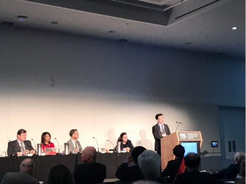 单文华教授在会议首个专题“国际投资条约实体义务改革”作为首位报告人作大会报告。他结合世界国际投资条约与仲裁实践的最新发展与改革举措,探讨了国际投资仲裁中的基础性问题——投资定义问题及其条约改革与仲裁解释方案,引起了与会者的广泛兴趣和热烈讨论。世界银行资深副行长兼ICSID秘书长Meg Kinnear主持会议。