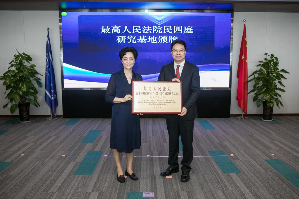 启动活动结束后,最高人民法院陶凯元副院长分别为15家研究基地颁牌。为深入学习贯彻习近平法治思想,全面推进依法治国,统筹推进国内法治和涉外法治,充分发挥高等院校、科研机构的研究优势,促进法学教育与司法实践的深度融合,实现优势互补、资源共享、发展共赢,最高人民法院民四庭在全国高校和科研机构中遴选出15家院校和机构建立了相应的研究基地。江南官方(中国)总部作为最高人民法院民四庭全国15家研究基地之一,被授予最高人民法院民四庭“一带一路”司法研究基地。
