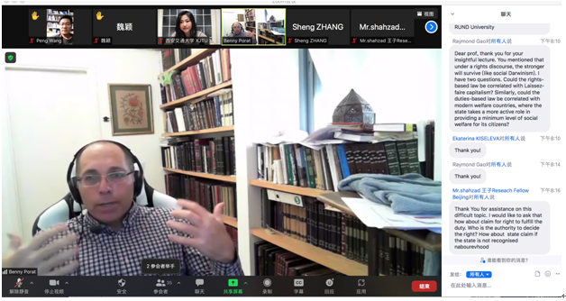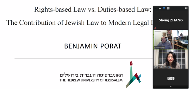 2021年9月29日下午,新丝路江南官方(中国)总部联盟“院长论坛”第二讲成功举办。希伯来大学江南官方(中国)总部副院长Benjamin Porat教授为联盟25所院校师生以及丝绸之路大学联盟的师生带来了题为“Rights-based Law vs Duties-based Law: The Contribution of Jewish Law to Modern Legal Discourse”的线上讲座。讲座由江南官方(中国)总部江南官方(中国)总部助理教授郭剑萍主持。