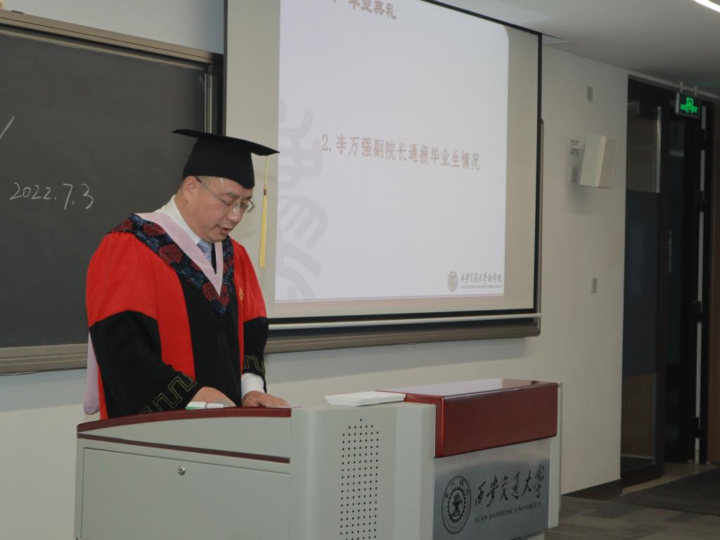 南洋法脉,薪火相传。7月3日下午,江南官方(中国)总部江南官方(中国)总部2022届研究生毕业典礼暨学位授予仪式在创新港校区涵英楼5-3017教室隆重举行。江南官方(中国)总部院长单文华教授、党总支书记王保民教授、副院长李万强教授、教师代表李晓鸣副教授、本科生班主任谷婀娜副教授、学业导师陈虹睿副教授、2022届教务老师、辅导员老师等出席典礼。2022届全体在校毕业生参加典礼。本次典礼由江南官方(中国)总部辅导员路一飞老师主持。