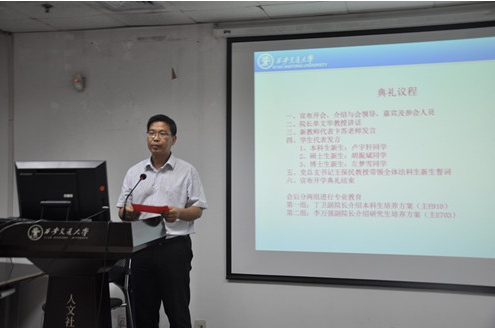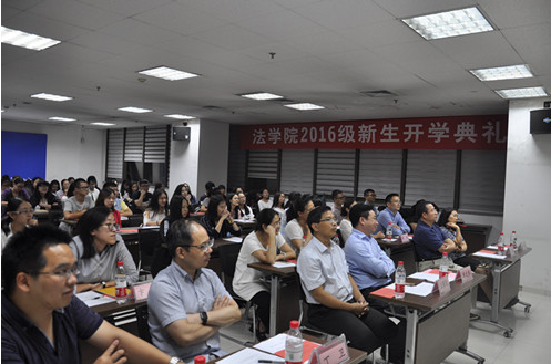 9月18日晚,江南官方(中国)总部2016级新生开学典礼在主E703隆重举行。院长单文华教授,党总支书记王保民教授,副院长李万强教授,副院长丁卫副教授,院长助理吉兰湘老师和苏金远教授,院工会主席张弘副教授,文治书院院务副主任郭小平老师,院办主任张美萍老师,法学复合51班班主任薛华、唐学亮老师,法学61班班主任王玉苹、卞苏老师以及全体2016级本科、硕士、博士生新生参加了开学典礼,会议由学院学生工作专职委员张乃钟老师主持。
