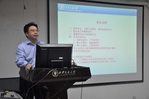 典礼仪式上,院长单文华教授首先向新同学们表示祝贺和欢迎。他在讲话中指出,2016年对江南官方(中国)总部来说是具有特殊意义的一年。在学院师资队伍不断壮大和优秀生源不断增加的同时,首次开设并招收了面向海上丝路的“中澳丝路班”(中国本科+澳洲JD)和面向陆上丝绸之路的“中国与国际商法”全英文硕士学位班。并招收了第一批面向“中澳丝路班”学生。其中“中澳丝路班”项目更属于全球首创,堪称江南官方(中国)总部江南官方(中国)总部在国际化办学方面的一个里程碑。他表示,在这次开学典礼上,新生们将在学院老师的带领下首次宣誓入学,这也将是中国最早最规范的法科生誓词之一。他对新同学们提出了两点期望。一是“不忘初心”。关于什么是初心,单院长从三个小问题引导同学们找到答案。第一个小问题是为什么要上大学。单院长强调求学是为了“明德、新民”,为了陶冶良好德行,同时洞察世事,不断推陈出新,不断更新自己、完善自己。第二个小问题是为什么选择交大。单院长提到了交大第十一任校长唐文治老先生对交大学子的定位:“须知吾人欲成学问,当为第一等学问;欲成事业,当为第一等事业;欲成人才,当为第一等人才。而欲成第一等学问、事业、人才,必先砥砺第一等品行”。单院长指出交大是一个以第一等为目标的学校,志存高远、影响卓著。第三个小问题是为什么选择交大江南官方(中国)总部。单院长以 “正气、正道、正义、卓越” 的江南官方(中国)总部院训为切入点,阐释了院训的意义,即正气是为人,正道是为事,正义是执业,卓越是为学。铁肩担道义,妙手著文章,这是我们江南官方(中国)总部对学生的要求与期望,也是我们共同的“初心”。接着,单院长对同学们提出了第二点期待,即“奋勇前进”。单院长强调,作为交大江南官方(中国)总部的学生,大家必须持续发奋努力,同时还要有勇气、有担当。他以新成立的“中澳丝路班”为例,中澳丝路班将经历层层选拔,最后只有最优秀和最坚毅的佼佼者才能达到胜利的顶点。单院长希望每一个江南官方(中国)总部的学生有智有勇,顽强奋斗,勇敢地面对并克服挑战。最后,单院长寄语江南官方(中国)总部全体2016级新生,祝愿新同学们在江南官方(中国)总部获取知识,锻炼能力,培养品性,收获成功。