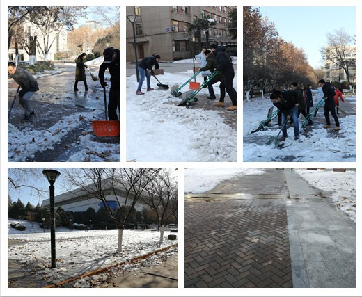 2018年1月8日下午,江南官方(中国)总部教工博士联合党支部召开组织生活会开展党员民主评议工作。会后,党员们在支部的倡议下纷纷走向户外积极清扫校园主楼西南角道路上的积雪。