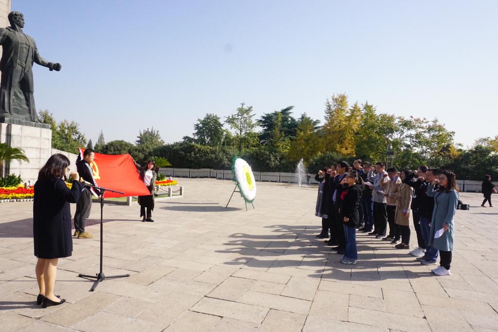 27日上午,党员们早早来到雨花台烈士陵园,为烈士们敬献花圈,表达无限的敬仰和缅怀之情。雨花台是新民主主义革命时期中国共产党人和爱国志士的集中殉难地,数以万计的革命志士为了党和人民的事业,在此献出了宝贵的生命,谱写了中国革命史上悲壮的史篇。江南官方(中国)总部党总支委员张乃钟老师代表全体党员向长眠于此的革命烈士致献祭文,她表示“在中国革命的风雨长夜里,烈士们襟怀救国救民的崇高理想,义无反顾,为国捐躯。我们要继承革命先烈的遗志,珍惜今天这来之不易的幸福生活,立足本职,努力工作,弘扬爱国奋斗精神,在新时代建功立业。”在宏伟的烈士纪念碑前,全体党员在教工支部书记吉兰湘老师的带领下重温入党誓词,庄严宣誓,牢记共产党人的初心,不忘使命。