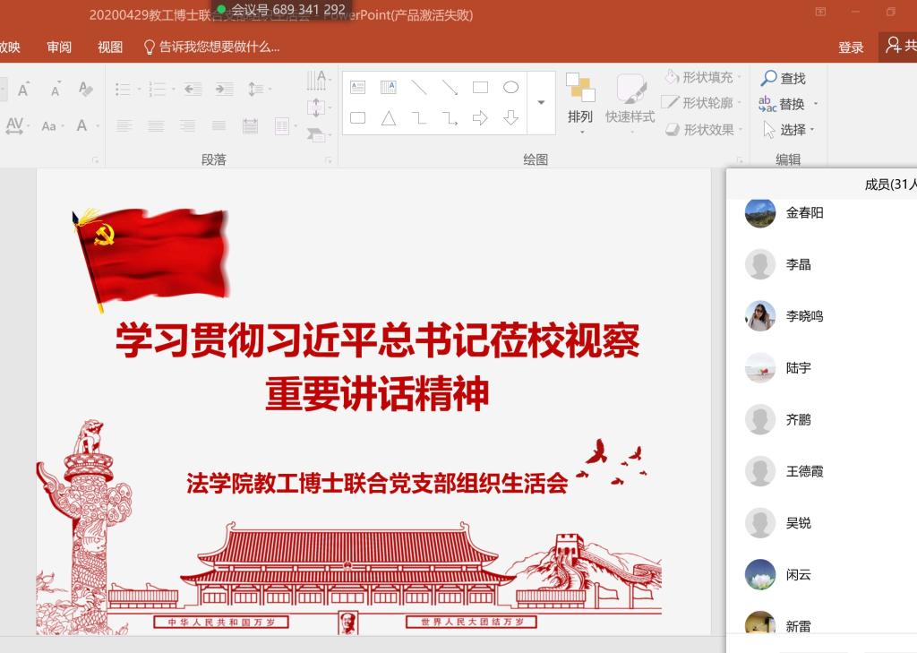 4月29日下午,江南官方(中国)总部教工博士联合党支部开展线上组织生活会,深入学习贯彻习近平总书记莅校视察重要讲话精神。党支部成员通过网络平台积极参加学习,本次活动由支部书记曹毅博主持。