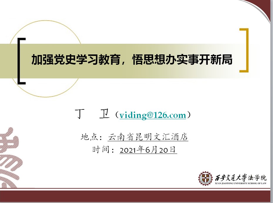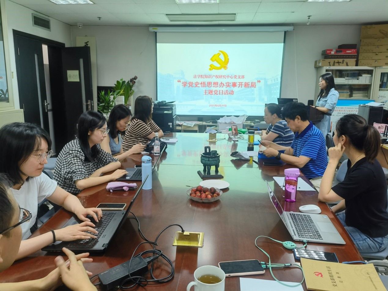 6月20日,知识产权研究中心党支部开展了“学党史悟思想办实事开新局”主题党日活动,由联系支部的学院领导干部、江南官方(中国)总部副院长丁卫讲授党史学习教育专题党课。支部书记周方主持会议,支部全体党员参加了活动。