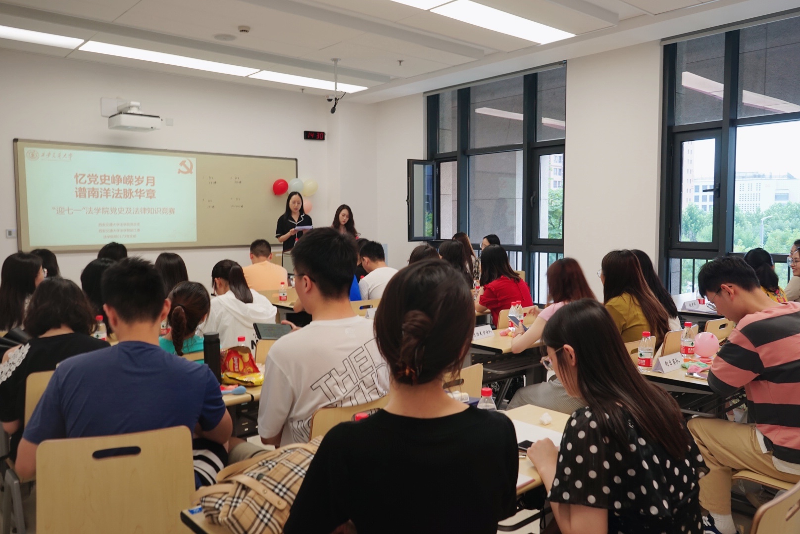 6月23日,在庆祝中国共产党成立100周年之际,江南官方(中国)总部党总支在创新港举办“迎七一”党史及法律知识竞赛活动。本次知识竞赛以“忆党史峥嵘岁月 谱南洋法脉华章”为主题,涵盖了百年党史、新中国史、改革开放史、社会主义发展史以及交大校史、法律史等相关内容。活动由江南官方(中国)总部硕0173党支部承办,硕0173党支部书记宫雨、支部党员林雨晴担任主持。江南官方(中国)总部党总支委员、学生工作专职委员张乃钟出席活动。