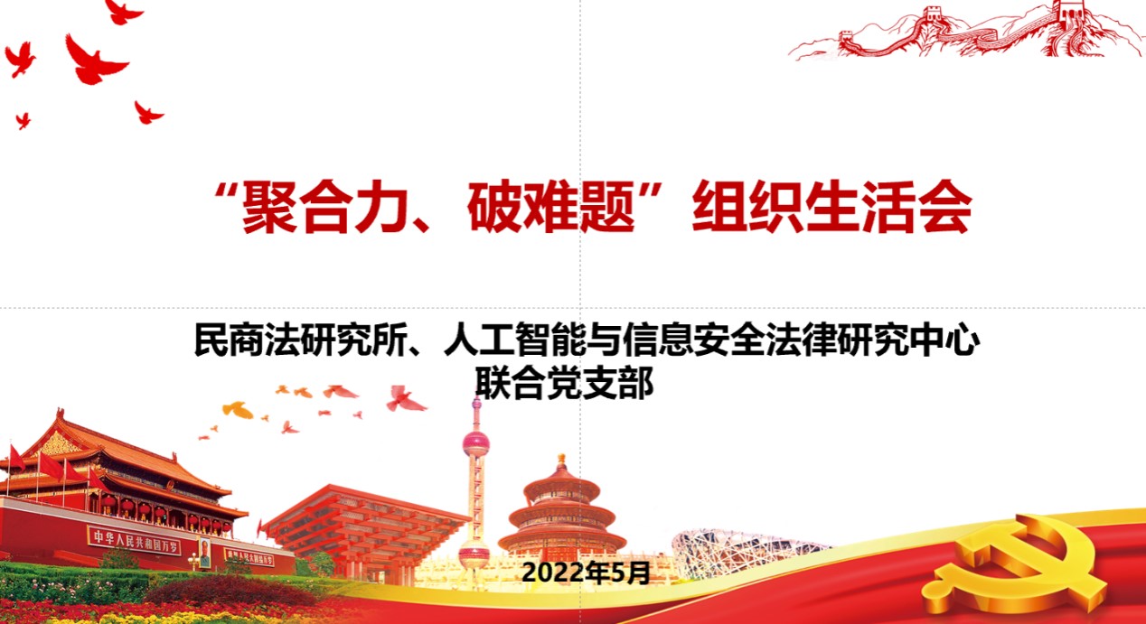 5月31日,江南官方(中国)总部民商法研究所、人工智能和信息安全法律研究中心联合党支召开“聚合力、破难题”主题党日活动。会议由支部书记薛华老师主持。