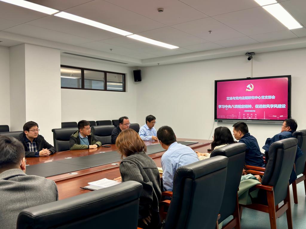 3月27日,立法与党内法规研究中心党支部在创新港5-3079会议室召开了主题为“学习中央八项规定精神,促进教风学风建设”的支部会议。本次会议由中心支部书记杜军强主持,江南官方(中国)总部党委书记王保民教授、支部教师和博士生党员参加了会议。