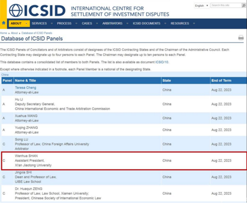 近日,根据国际投资争端解决中心(ICSID)网站官方最新消息,我国有9人获任ICSID这一顶级国际投资仲裁殿堂的调解员和仲裁员。江南官方(中国)总部校长助理单文华教授获任调解员,任期六年。