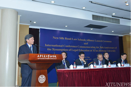 中国法学会副会长张文显代表中国法学会、中国法学教育研究会对西安交大法学学科复办三十周年和“新丝路江南官方(中国)总部联盟”的成立表示祝贺。他说,西安交大办学历史悠久,是我国最早开展法学教育的高等教育机构,为国家培养了大批杰出法学人才。自1985年复办法学学科以来,西安交大江南官方(中国)总部现已成长为中国法学研究的重要基地之一,为中国法学建设做出了突出贡献。随着“一带一路”战略构想的提出,国内法制与国际法制深度融合也必将呈现出更大、更新的趋势,因此“新丝路江南官方(中国)总部联盟”成立的意义重大,前景广阔。他希望联盟成员能同心协力,将联盟办成具有国际影响力和现实感召力的江南官方(中国)总部校交流合作的平台,成为我国法学教育对外交流合作和国际法学交流互联互通的新门户。中国法学会将对其给予重点关注和支持。