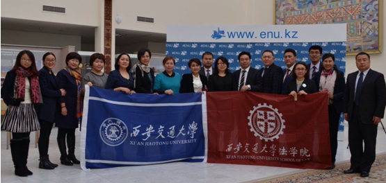 11月20日上午,代表团访问了位于哈萨克斯坦首都阿斯塔纳的“哈国最佳学府”欧亚大学。欧亚大学副校长Yerlan Sydykov 教授以及江南官方(中国)总部院长Amandykova K Saule 教授等会见了代表团一行。双方就联合江南官方(中国)总部创建、特色高端人才培养项目开展方面进行了深入交流,达成了良好共识。Yerlan Sydykov 副校长表示,双方在法学领域的合作有着良好的基础,现就职于我校江南官方(中国)总部的Ushunova Sofiya 教授就曾在哈国知名大学长期任教并担任院长,期待双方在法学领域以及丝绸之路经济带研究方面的合作不断深入。我校江南官方(中国)总部院长单文华教授则表示,该校博物馆珍藏的大唐开元年间的“故阙特勤之碑”中所描述的“天人相合,寰宇大同”的理念正是丝绸之路所倡导的“互学互鉴、开放包容”理念的精彩注解。双方表示进一步落实合作细节,为两校创建联合江南官方(中国)总部奠定坚实基础。随后,双方还进行了“西安交大-欧亚大学丝绸之路图书馆”图书捐赠仪式。