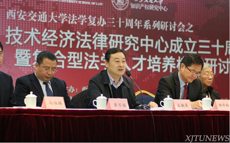 研讨会于28日上午在南洋大酒店开幕。中国工程院院士汪应洛、陕西省委政法委副书记、综治办主任王永明、陕西省高级人民法院副院长田平利、陕西省知识产权局局长巨拴科、西安交大副校长王铁军、陕西省人大教科文卫委员会办公室主任赵建军、西安市法学会专职副会长黄必方、西安交大江南官方(中国)总部副院长李万强等科技法学、知识产权法学界著名专家学者以及相关校友等一百五十余人出席了开幕式。开幕式由西安交大技术经济法律研究中心、知识产权研究中心主任马治国主持。