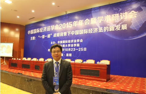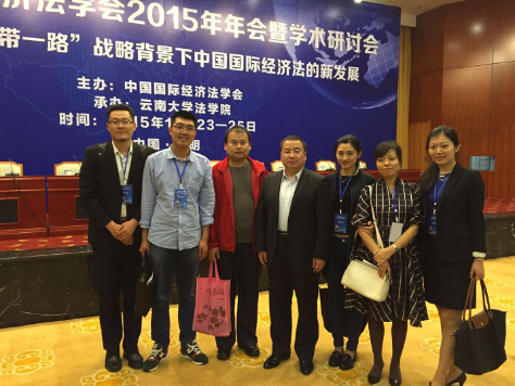 2015年10月24日至25日,中国国际经济法学会2015年年会在云南昆明召开。我校江南官方(中国)总部院长单文华教授,副院长李万强教授以及多名青年教师与会。会上,中国国际经济法学会举行第六届理事会换届选举,单文华教授当选中国国际经济法学会副会长,李万强教授、王江雨教授当选常务理事,刘桥教授、张生博士、陈虹睿博士和王朝恩博士当选理事。