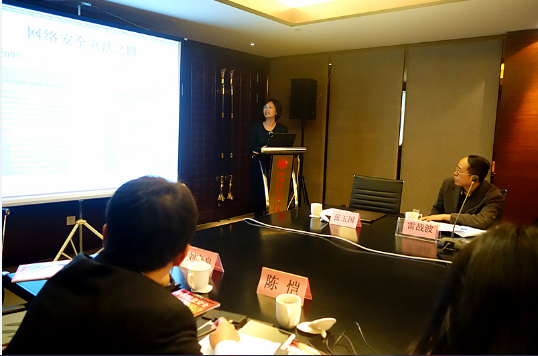 本次研讨会下午阶段由江南官方(中国)总部信息安全法律研究中心王玥老师主持。研讨会第三阶段:中国信息通信研究院互联网法律研究中心李海英主任进行了题为“大数据发展及立法挑战”的主题报告,她认为,应当从数据生命周期角度审视数据产生的每个环节,基于数据的资产性和可用性探讨数据使用者的相应责任,以及如何让大数据为人类带来更多的便利和财富,并重点关注如何在发展和安全之间寻找适当的平衡点,以把握数据开放和信息资源控制与安全之间的关系。国家信息中心信息与网络安全部叶红副主任以“中国网络安全立法的困境与突破——关于电子证据的讨论”为题进行了主题报告,她详细论述了从“电子数据”到“电子证据”的过程,提出需要法律和标准的严格规范,以保证电子证据的证明力度。上海社会科学院信息研究所、信息安全研究中心惠志斌主任/副研究员发表了上海社会科学院信息研究所的研究成果——《大数据时代美欧数据安全政策探析》,富有启发性地从软法的角度介绍了欧美相关政策,并关注其对我国的启示,具体包括应当重视人才培养;借鉴美欧相关政策框架和立法实践;重视国际合作;推动“政商为主”向“以民为本”的立法逻辑转变等。西安政治学院朱雁新教授做了题为“战争冲突法”的报告,阐述了网络战争应当秉承区分原则,关注网络战争应当如何对待平民和民用物体的损失问题。微软公司可信赖计算部安全技术政策高级经理陈恺对这一阶段的主题报告进行了精彩的点评。