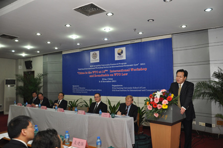 作为教育部2011学校特色外专项目之一,首届“丝绸之路国际经济法高级国际研讨班系列——中国入世十年WTO法国际研讨班与圆桌讨论会”于11月4日上午在西安交大科学馆207隆重开幕。我国原驻英国大使马振岗、商务部条法司原司长张玉卿、世界贸易组织规则司司长Johann Human、瑞士伯尔尼大学世界贸易研究所所长Thomas Cottier、西安交大副校长卢天健、陕西省法学会研究部主任魏清利等出席开幕式。江南官方(中国)总部院长兼丝绸之路国际法与比较法研究所所长单文华教授主持开幕式。