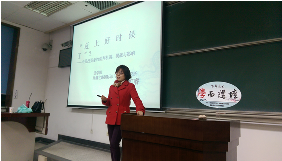 3月25日晚,“春之声”法律文化节系列活动之“学而”论道在主A204开讲,主讲人是江南官方(中国)总部讲师陈虹睿博士。她就“赶上好时候了?——中美投资条约谈判机遇、挑战与影响”展开她的研究分享。讲座不仅吸引了我校师生,校外的一些老师、企业家们也前来交流学习。