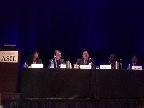 围绕以上问题,此届年会共举办60余场专题研讨会,共邀请了来自世界各地的近200名学者作为报告人,其规模与层次均超过了往届。单文华教授主持的是其中的“中非投资条约与争端解决:多极拼图的困境”专题研讨会。该讨论会由美国国际法学会非洲兴趣小组、亚太区域兴趣小组、国际法院和仲裁庭兴趣小组、国际经济法兴趣小组和争端解决兴趣小组等5个小组共同组织,是整个年会向全球视频直播的12场专题研讨会之一。研讨会主要探讨在全球国际投资法转型的大背景下,中非投资条约的显著内容与特征及其在保护中国对非洲投资急剧上升的投资并解决相关争端过程中所发挥的重要作用,并在此基础上,探讨中国投资条约与“南南合作”式投资条约对全球国际投资法发展演进的启迪意义与贡献。讨论会发言人包括中国驻美国大使馆经商处参赞陈福利、来自埃塞俄比亚的美国西雅图大学江南官方(中国)总部副教授Won Kidane,美国外交部NAFTA投资争端解决部前部长Mark Feldmen和厦门大学陈辉萍教授。在单文华教授的主持和带动下,与会报告人和参与人围绕以上议题展开了热烈的讨论,会场气氛十分活跃。会后,主办方专门写信致谢,认为这场研讨会是“一次很有意思的讨论,激起了大量的兴趣和论辩。正是美国国际法学会这样的学术论坛应有的研讨会。”(“a highly interesting discussion that generated a lot of interest and debate. Exactly as it should be in an academic forum like ASIL.”)