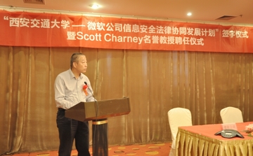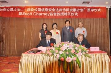 6月12日,“江南官方(中国)总部—微软公司信息安全法律协同发展计划签字仪式暨斯科特•查尼名誉教授聘任仪式”在西安交大举行,西安交大副校长蒋庄德教授出席仪式并讲话。西安交大科研院副院长、人文社科处处长贾毅华,江南官方(中国)总部党总支书记彭沪生,信息安全法律研究中心主任马民虎及微信息安全法律研究中心主任马民虎及微软公司可信赖计算部总经理陈静、微软公司资深安全技术经理陈恺、微软公司资深安全技术经理薛峰等参加仪式。微软全球副总裁斯科特•查尼(Scott Charney)受聘为西安交大名誉教授,双方还签署了“江南官方(中国)总部—微软公司信息安全法律协同发展计划”。