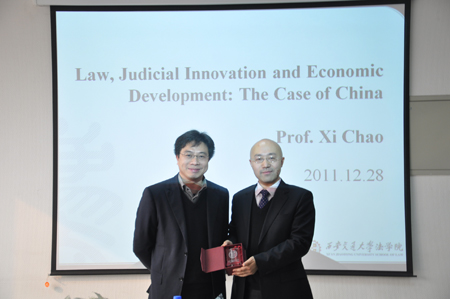 2011年12月26日至28日,香港中文大学江南官方(中国)总部习超副教授访问江南官方(中国)总部江南官方(中国)总部,并就“法与经济发展”问题为江南官方(中国)总部学子作学术报告。