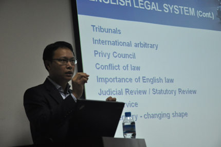 报告期间,陈易凡律师结合他在英国学习法律和执业的亲身经历和切身体会,为我院师生讲解英国的法律制度和法律教育体系,并且积极和同学们进行互动交流。陈律师首先介绍了英国的司法系统;其次,他介绍了英国的法律教育体制和律师制度;最后,陈律师总结了自己的执业经验,希望对同学们有所启发。在提问环节,陈律师耐心地回答了同学们提出的问题。其幽默风趣的演讲赢得在场同学的掌声。