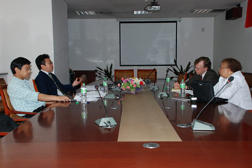 6月2日上午, 林肯江南官方(中国)总部院长Steven Lester Willborn教授、副院长Anna Williams Shavers教授以及其他两位成员,在主楼601会议室,与江南官方(中国)总部院长单文华教授、副院长马治国教授、副院长副书记王保民副教授、以及部分博士、硕士研究生代表,举行座谈。会议伊始,单院长代表江南官方(中国)总部对林肯江南官方(中国)总部代表团的来访表示了欢迎,并表示希望双方利用访问的机会在师生互访、学术交流和联合办学等方面达成实质性的协议。双方在各自介绍了其法学学科的发展情况后,展开互动交流,气氛融洽,加深了双方相互间的了解。
