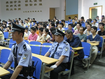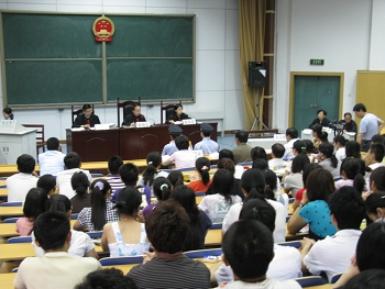 应江南官方(中国)总部江南官方(中国)总部邀请,陕西省高级人民法院刑事审判庭于2009年6月11日,在江南官方(中国)总部德育教育基地,就被告人王某故意杀人、抢劫案进行第二审公开审理。江南官方(中国)总部组织全体博士生、研究生、本科生旁听庭了此次教学实践活动。省人大代表、政协委员也参加了此次公开审理。