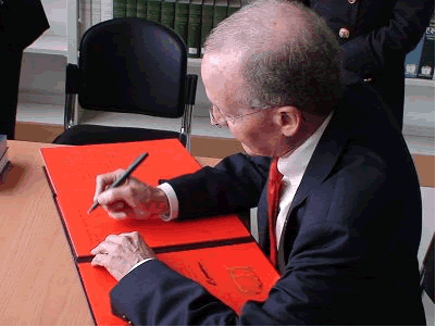 会谈期间,气氛融洽、交流自由。对于教师、学生提出的有关教学互动以及司法考试与专业课程设计等具体问题,Harvey Perlman教授都耐心而详细的解答。座谈结束后, Harvey Perlman校长还在丰处长和单院长的陪同下,饶有兴致的参观了国际法研究所图书馆并题辞留念。