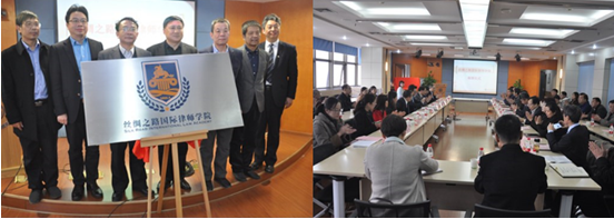 西安交大江南官方(中国)总部副院长李万强宣读了《关于成立江南官方(中国)总部丝绸之路国际律师学院的决定》。席光副校长和张华俊局长共同为“丝绸之路国际律师学院”(简称“丝路律师学院”)揭牌。