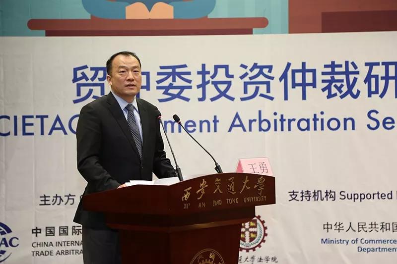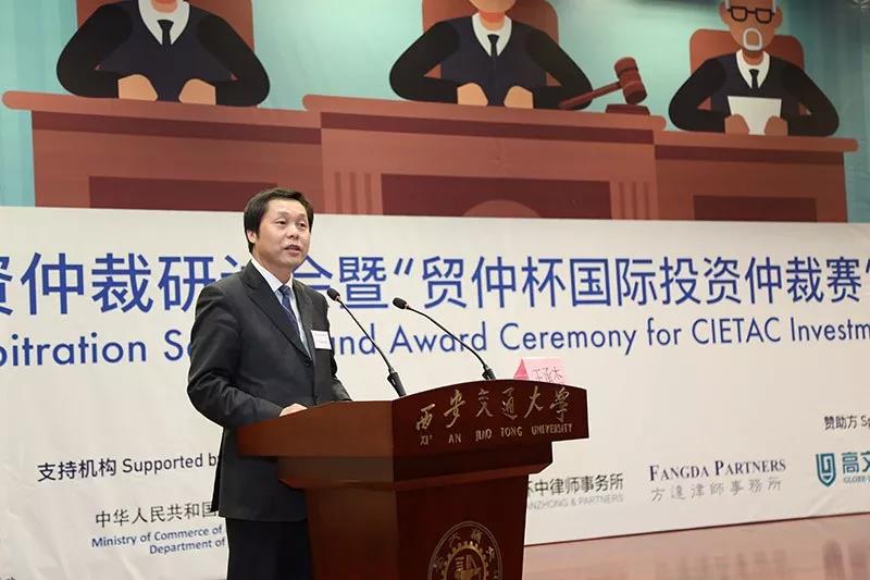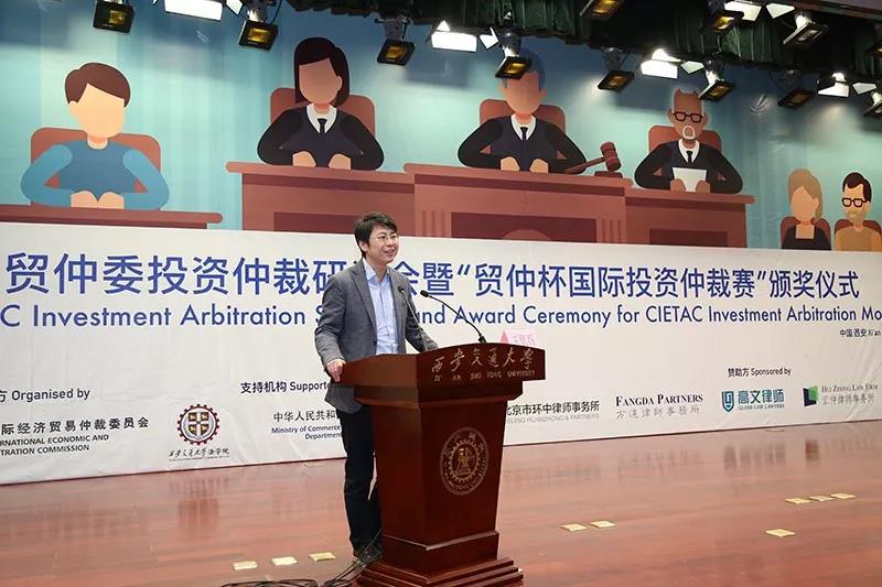 投资仲裁赛后,西安交大江南官方(中国)总部与贸仲委共同举办了贸仲委投资仲裁研讨会。商务部条法司为本次投资仲裁赛和研讨会的支持机构。西安市人民政府副市长王勇、贸仲委副主任兼秘书长王承杰、商务部条法司投资处副处长王优酉、西安交大江南官方(中国)总部院长单文华、西安贸促会会长龙晓华出席会议。研讨会上,来自国内外的投资仲裁领域专家、学者和律师对投资仲裁的程序性争点进行评述,结合国际投资仲裁的著名案例分享实务经验,介绍了包括对仲裁请求的先期驳回和第三方资助在内的热点话题。