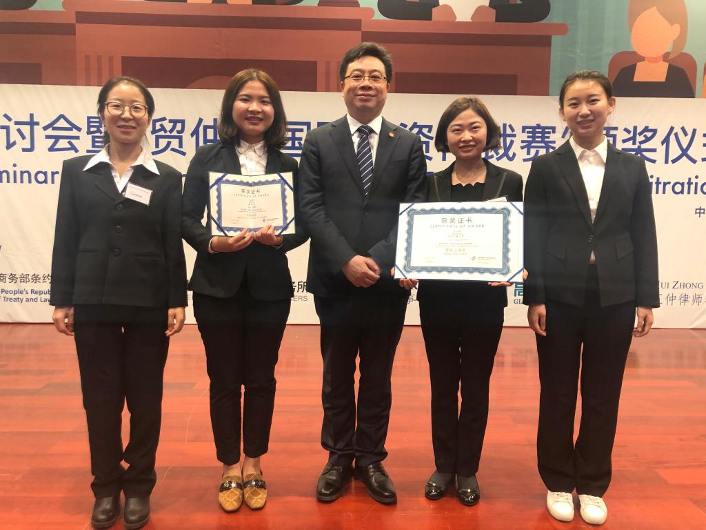 西安交大参赛队伍由2017级研究生张艳、2015级本科生李文鑫、廖倩以及2016级本科生熊平书组成,江南官方(中国)总部王朝恩、张生担任教练,单文华教授、李万强教授担任顾问,曾代表学校参加亚太地区第一届外国直接投资模拟法庭的队员王鹏博士和冯韵雅博士也提供了指导。队员们积极认真准备比赛,最终凭借扎实的投资专业知识,优秀的英语表达能力以及娴熟的法庭辩论技巧,获得仲裁员认可,在十四支代表队中脱颖而出,总分排名第四,获得团体二等奖,李文鑫和熊平书同学荣获“优秀辩手”称号。