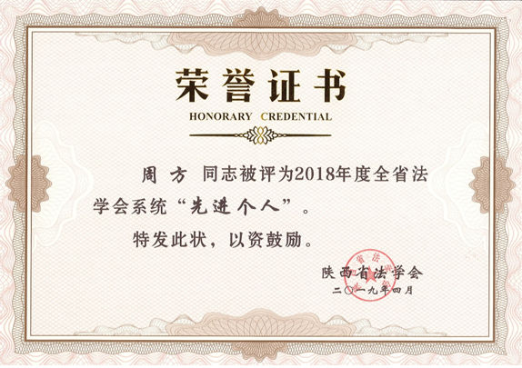 陕西省法学会科技法学研究会周方秘书长被授予“省法学会系统先进个人”称号