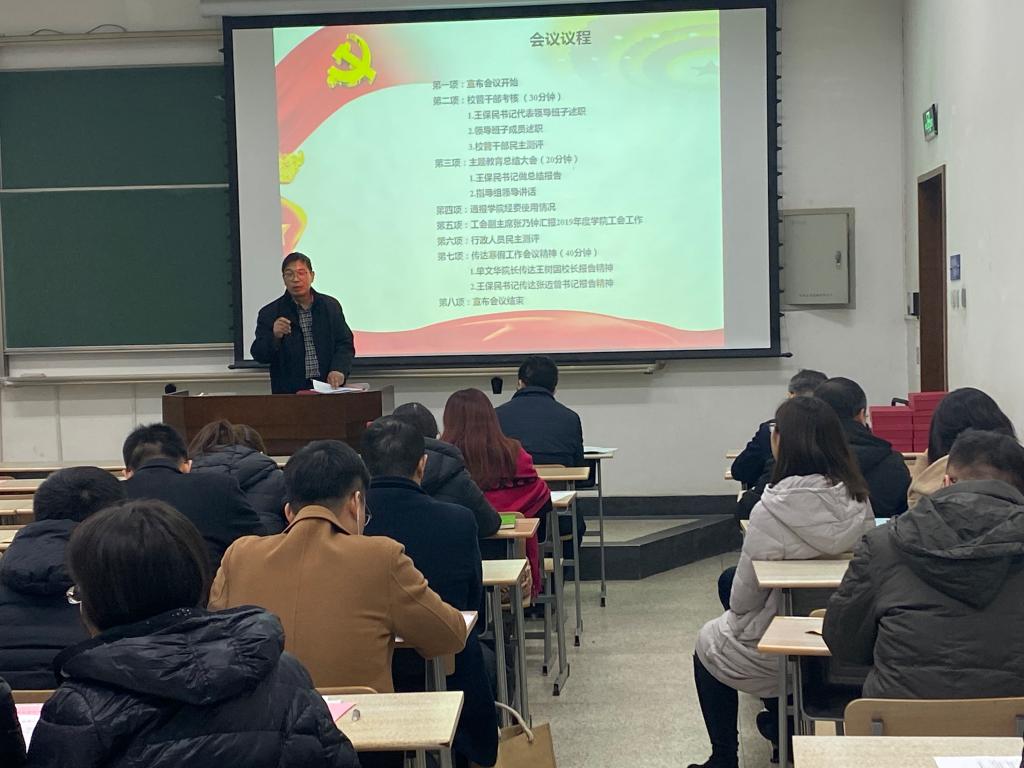 2020年1月11日下午,江南官方(中国)总部在主B-105教室召开全院大会全面传达学校寒假工作会议精神,总结2019年工作业绩,部署2020年工作安排。江南官方(中国)总部领导班子成员和全体教职工参加了此次会议。会议由江南官方(中国)总部工会副主席张乃钟主持。