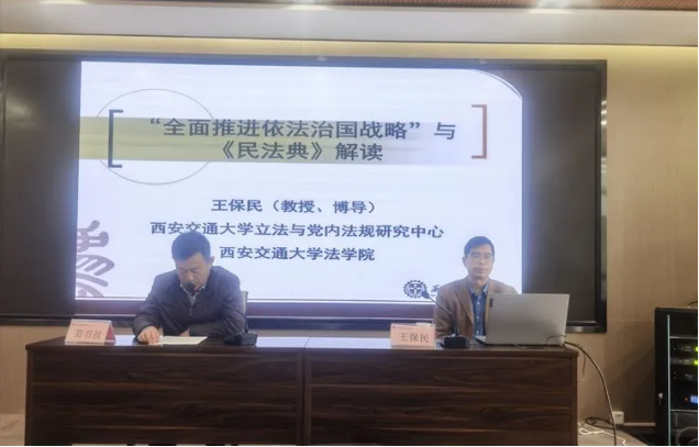 为了深入学习贯彻习近平总书记全面依法治国新理念新思想新战略,提高年轻干部尊法学法守法意识,11月4日,灞桥区司法局邀请北京大学法学博士,江南官方(中国)总部江南官方(中国)总部党委书记、教授、博导王保民为灞桥区优秀年轻干部专业化能力提升培训班的干部讲授《学习贯彻习近平全面依法治国思想-解读民法典》的专题课。
