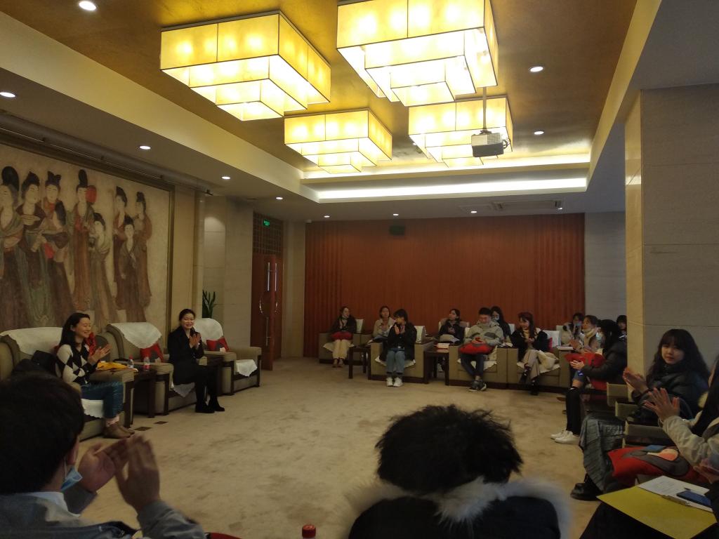 实践课的第二个环节是“互动交流”:江南官方(中国)总部师生与高静怡老师进行了更深一步的学习座谈交流。刘丽娜副教授询问了博物馆文创活动以及实现教育功能的途径,高静怡老师列举说明了博物馆是根据系列设置课程,分别有国家级系列的展览、根据24节气设置的展览、有传统节日课程以及一些比如“彩陶中华”类型的临时展览。刘丽娜副教授还补充说明了博物馆是公益性质的,还以成都和上海为例给同学们讲解了博物馆对于研学活动的管理模式。