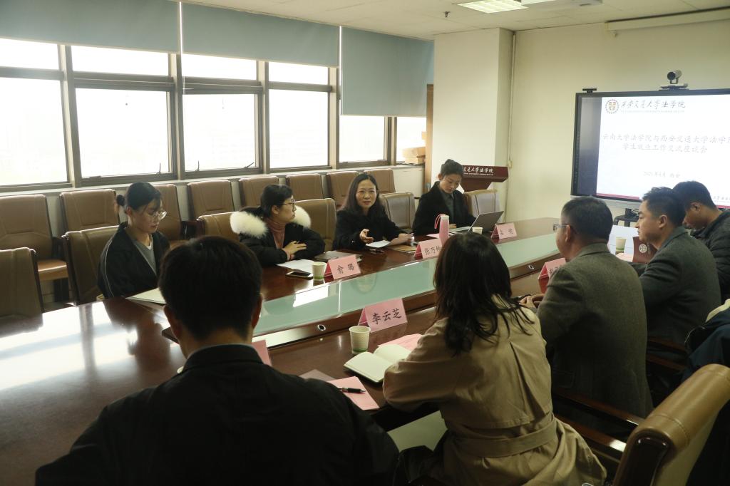 随后,双方针对法学毕业生就业工作普遍存在的重难点问题进行了交流。刘蔓琦书记介绍了云南大学江南官方(中国)总部学生就业工作的困难点,他指出生源特点、家庭经济情况、用人单位隐形性别歧视、学生就业观念传统等情况制约了就业工作的开展,导致学生就业率偏低。他对交大江南官方(中国)总部的就业工作表示赞扬,指出我院就业工作呈现系统化、提前化、精细化等特点,许多就业帮扶举措值得学习。张乃钟指出,我院非常重视学生就业工作,工作中形成了本科生和研究生就业工作“一体化”管理服务机制,在学院领导下以学生工作专职委员为主干,教学副院长、兼职辅导员、研究生导师和科研团队以及本科生班主任、学业导师为补充的就业工作队伍。在就业信息发布、就业经验交流、就业指导帮扶、实习平台搭建、校友资源等方面合理配置,精准发力,努力确保每一名毕业生顺利就业。特别是2020年江南官方(中国)总部研究生毕业生在基层选调生,世界五百强企业就业等重要指标超额完成学校目标任务,取得建院13年以来历史最好成绩。学院就业助理丛珊也从毕业生角度对我校选调生考试温馨培训以及学院“管家式”的就业精准指导和帮扶等方面分享了自己的心得和感受。