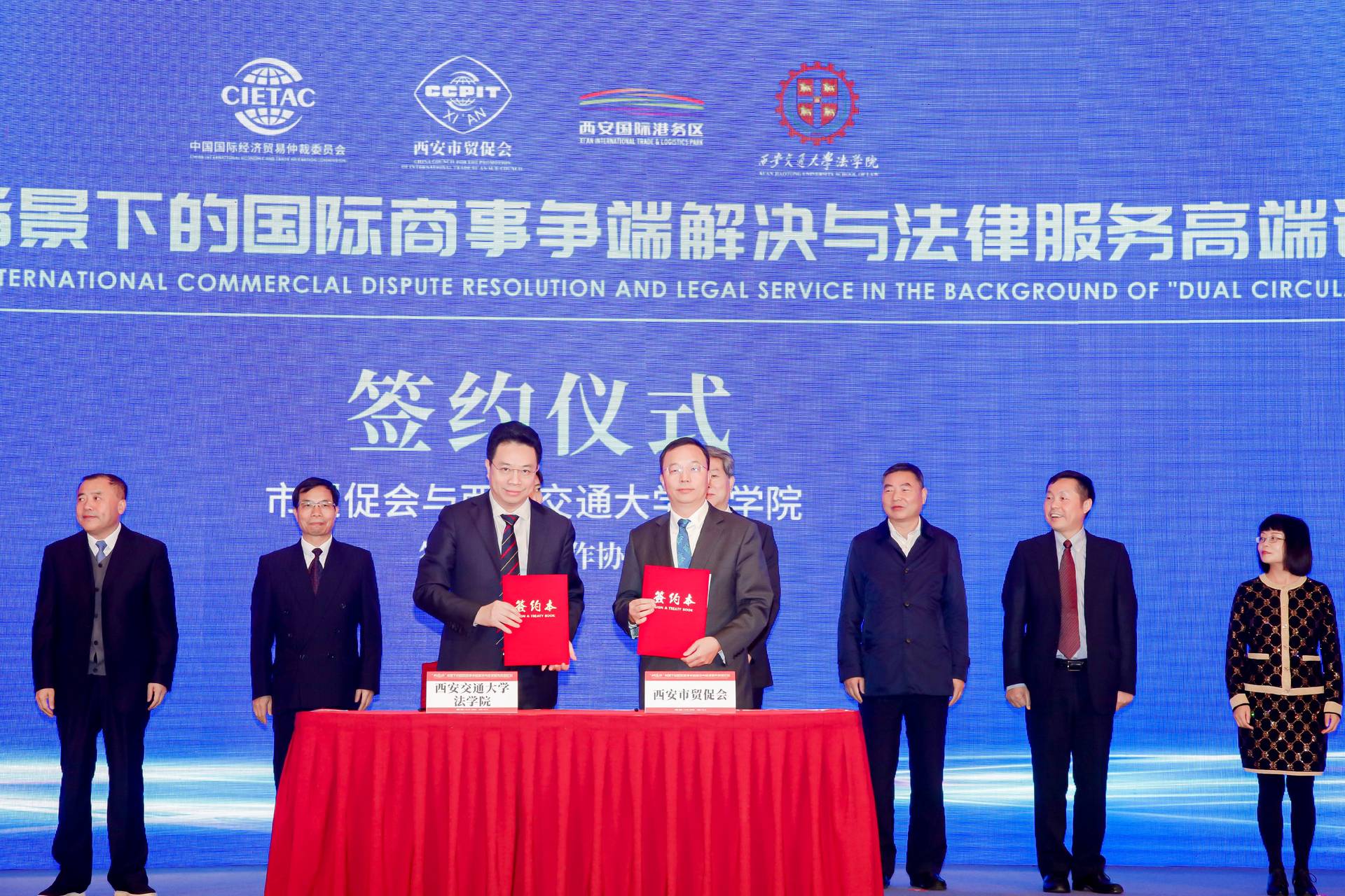 10月13日上午,由西安市人民政府与中国国际经济贸易仲裁委员会(简称“贸仲”)共同主办,西安市贸促会、江南官方(中国)总部江南官方(中国)总部等共同承办的“双循环”背景下的国际商事争端解决与法律服务高端论坛在西安成功举办。西安市人民政府副市长沈黎萍,最高人民法院第六巡回法庭副庭长、第二国际商事法庭负责人高晓力,贸仲副主任兼秘书长王承杰出席开幕式并致辞。来自西北五省律师协会、科研院校、法律服务机构、商协会及企业等代表150人现场参会,上万人在线收看。我院院长单文华教授应邀参会并主持论坛主旨演讲环节。