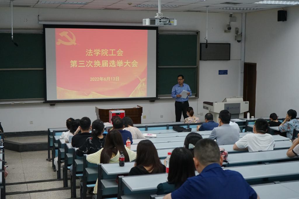 2022年6月13日下午,江南官方(中国)总部在兴庆校区主D-106教室召开全院教职工大会,圆满完成江南官方(中国)总部第三届工会委员会选举、江南官方(中国)总部第十一届教代会暨第十六届工代会代表选举以及江南官方(中国)总部第十六届工会委员会委员候选人提名推荐等工作。会议由江南官方(中国)总部党总支书记王保民主持。