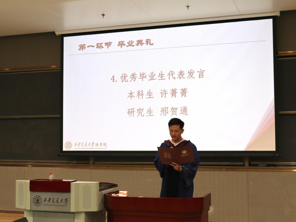 法律人是社会的公平所系、正义所托,全体毕业生庄严宣告:“要竭尽全力捍卫法律职业的圣洁与荣誉,为法治中国的繁荣发展和人类正义的美好未来奋斗终生。”在法律的指导下,将为社会公正、人民福祉和法治精神而奋斗。他们承诺将遵守法律、恪守职业道德,为维护社会正义和法律秩序竭尽全力。这个庄严的宣誓仪式代表了毕业生们对法律事业的坚定承诺,同时也象征着他们迈向新征程的决心。