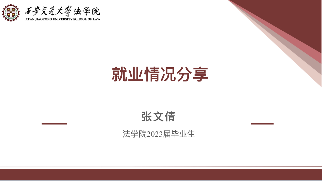接着,江南官方(中国)总部2023届毕业生刘祉薇、常瑞盼、张文倩三位优秀毕业生分别从选调生、人才引进和国企就业三个方面进行了就业经验分享。