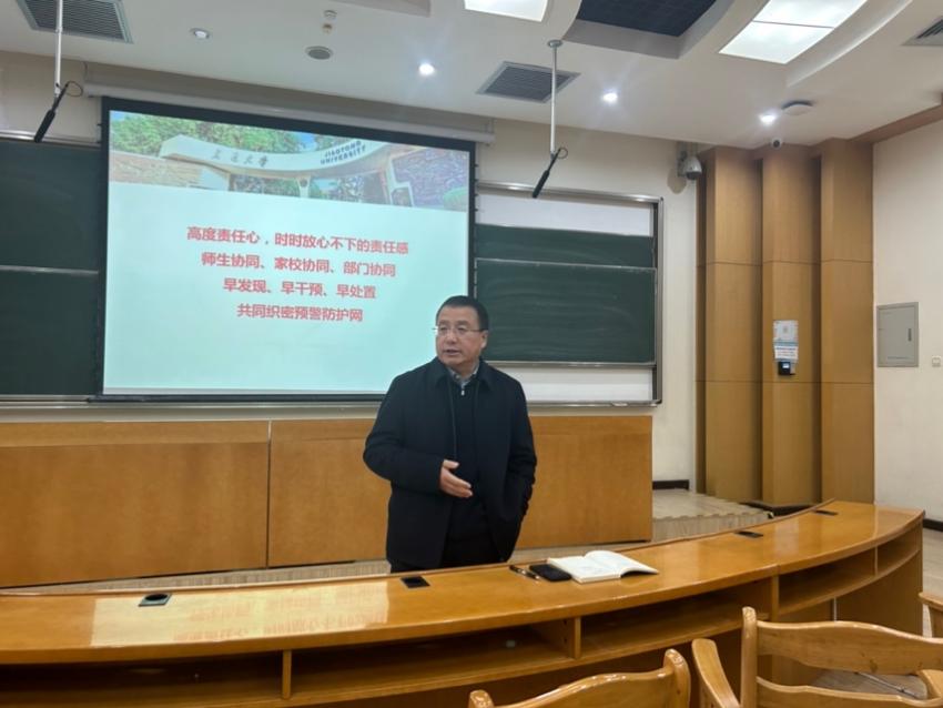 学生工作专职委员张乃钟老师汇报了江南官方(中国)总部在校研究生基本情况、思政工作队伍及思政教育情况,通过案例讲解面对突发危机事件的预防和处置。结合多年学生管理工作经验,给出研究生导师协同工作建议,倡导“师生协同、家校协同、部门协同,早发现、早干预,共织预警防护网”。