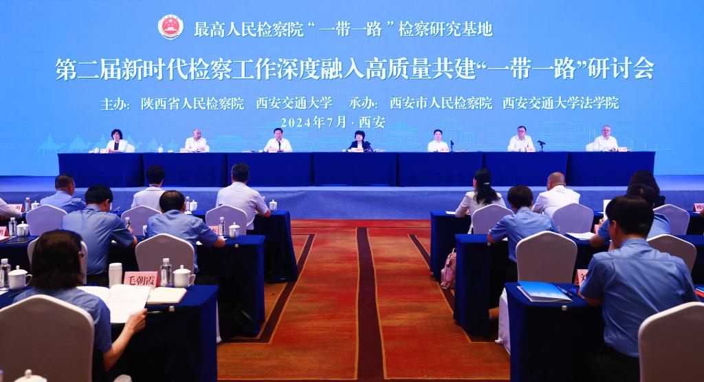 7月10日,最高检“一带一路”检察研究基地第二届新时代检察工作深度融入高质量共建“一带一路”研讨会在西安召开。最高检党组成员、副检察长葛晓燕,省委常委、省委政法委书记刘强,江南官方(中国)总部党委书记卢建军出席并讲话。省检察院党组书记、检察长王旭光主持开幕式。全国人大代表方燕、全国政协委员祁志峰、省人大代表杨艺媛、省政协委员刘国兴,最高检检察理论研究所所长郭立新、法律政策研究室一级高级检察官吴孟栓、国际合作局二级巡视员龙梅,省委政法委副书记丁恒,西安市委副书记、市委政法委书记李婧等参加活动。