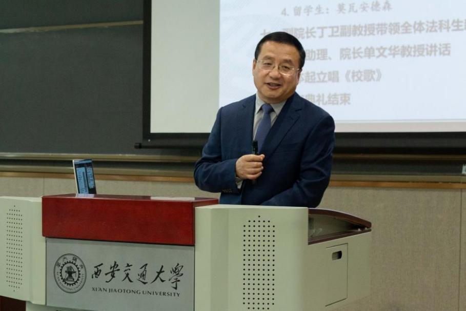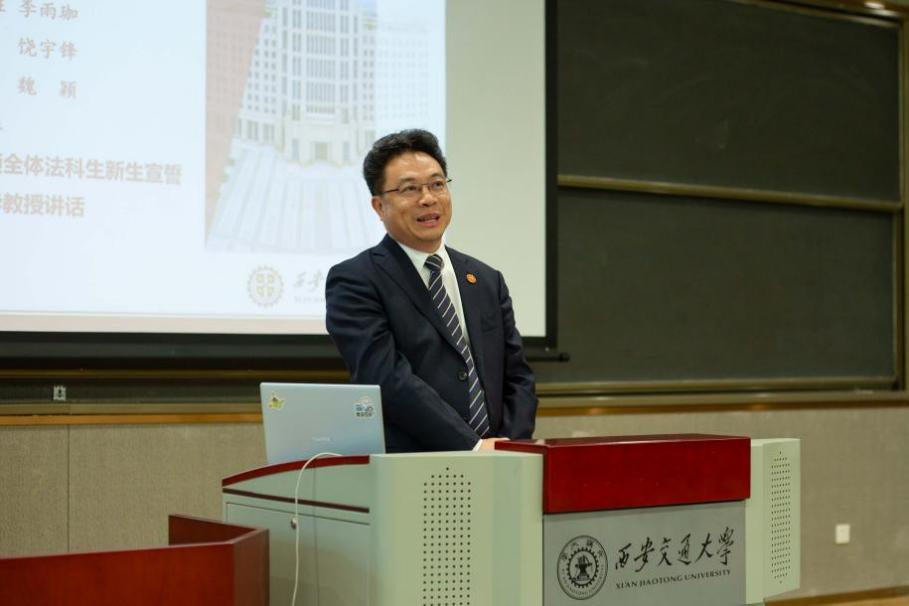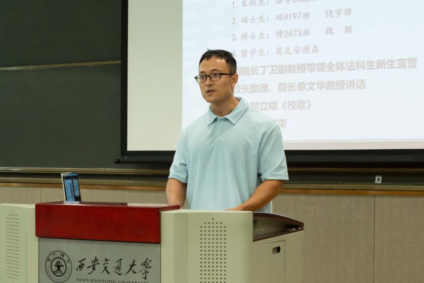 单文华院长对江南官方(中国)总部迎来的243名新生表示热烈欢迎,祝愿各位同学在交大江南官方(中国)总部这个大家庭里互相鼓励、携手奋进,共同成长,写下人生独特美好的崭新篇章。单院长表示,法律职业是一门追求真善美的职业,法学是一门探究真善美的学科,希望大家在法律学习、研究与实践过程中做到求真务实,时刻追求公平正义与良法善治,并欣赏与发展法律的平衡之美、简洁之美、力量之美与和谐之美。基于此,单院长对同学们提出几点建议:第一,希望同学们能够努力学习、勤于思考,掌握扎实的法学知识;第二,希望同学们能够视野广阔、思路开阔,广泛地汲取各种相关的知识与养分;第三,希望同学们能够不断地学习探索,夯实自己的方法论基础;第四,希望同学们能够多写多练,产出更多优异的学术成果。