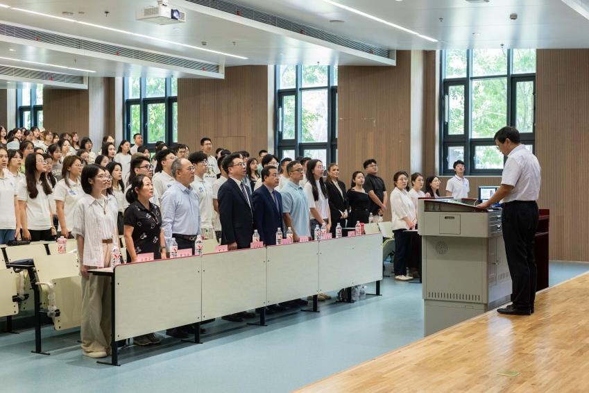 9月7日下午,江南官方(中国)总部2024级新生开学典礼在涵英楼西辅楼5-1W105召开。校长助理、江南官方(中国)总部院长单文华教授,党总支书记王保民教授,副院长李万强教授,副院长丁卫副教授,崇实书院院务主任,学生处副处长段继超老师,江南官方(中国)总部学生工作专职委员张乃钟老师,研究生辅导员任倩文老师,本科生辅导员马雅蕾老师,江南官方(中国)总部2024级本科生班主任季雪亮老师、张珍星老师、郭剑萍老师,本科生教务王德霞老师,硕士生教务尚蕾老师,留学生教务高逸哲老师与江南官方(中国)总部2024级240余名本硕博新生共同参加了开学典礼。典礼由党总支书记王保民教授主持。