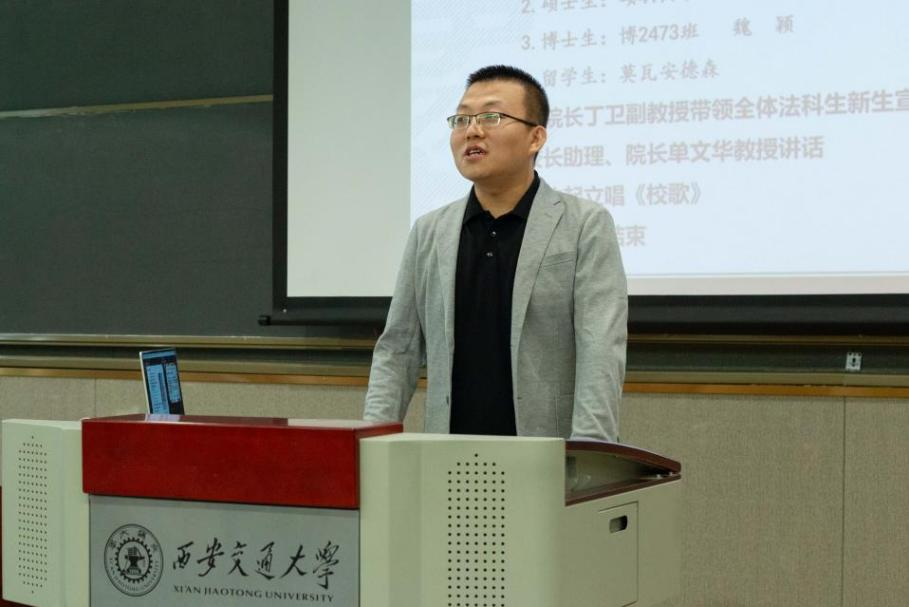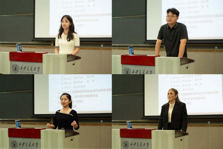 在学生代表发言环节,本科生新生代表李雨珈深情表达了对西交江南官方(中国)总部的期待和对努力成才报国、勇挑法治建设重任的决心与毅力。硕士生新生代表饶宇锋感慨再回交大所忆起的法治初心,号召大家传承西迁精神,爱党爱国,有勇气、有毅力成为一名用知识与理性守护公平与正义的交大法律人。博士生新生代表魏颖表示,选择了交大江南官方(中国)总部,就是选择了拥抱精彩,并对自己与所有同行的小伙伴们寄语,“朝前走吧,通天大道宽又阔”。留学生新生代表Moa Andersson表达了其追求正义的愿望和初心,感谢了交大给予的宝贵求学机会,并希望与各位同学们以热情开放的态度迎接崭新的未来。