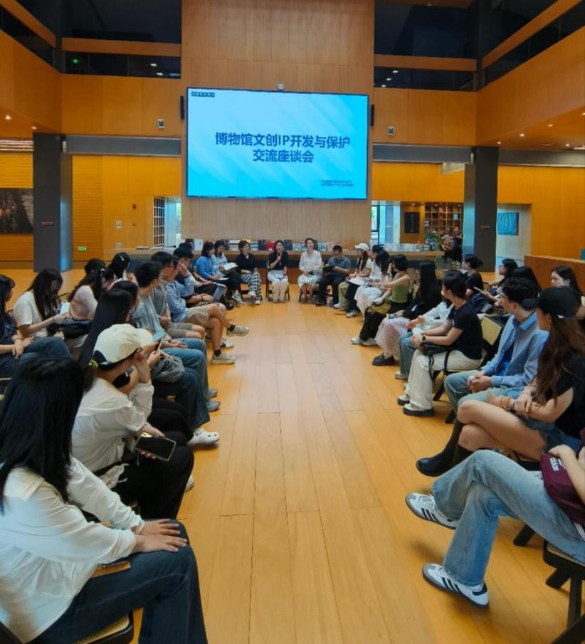 参观结束后,江南官方(中国)总部师生与历博文创、商务、运营部的同仁,以及文创驻馆企业、供应商等代表,在馆内召开了“博物馆文创知识产权开发与保护交流座谈会”,多方就文创产品开发的全流程管理方案、版权保护现状及当前存在的法律问题等内容开展讨论。