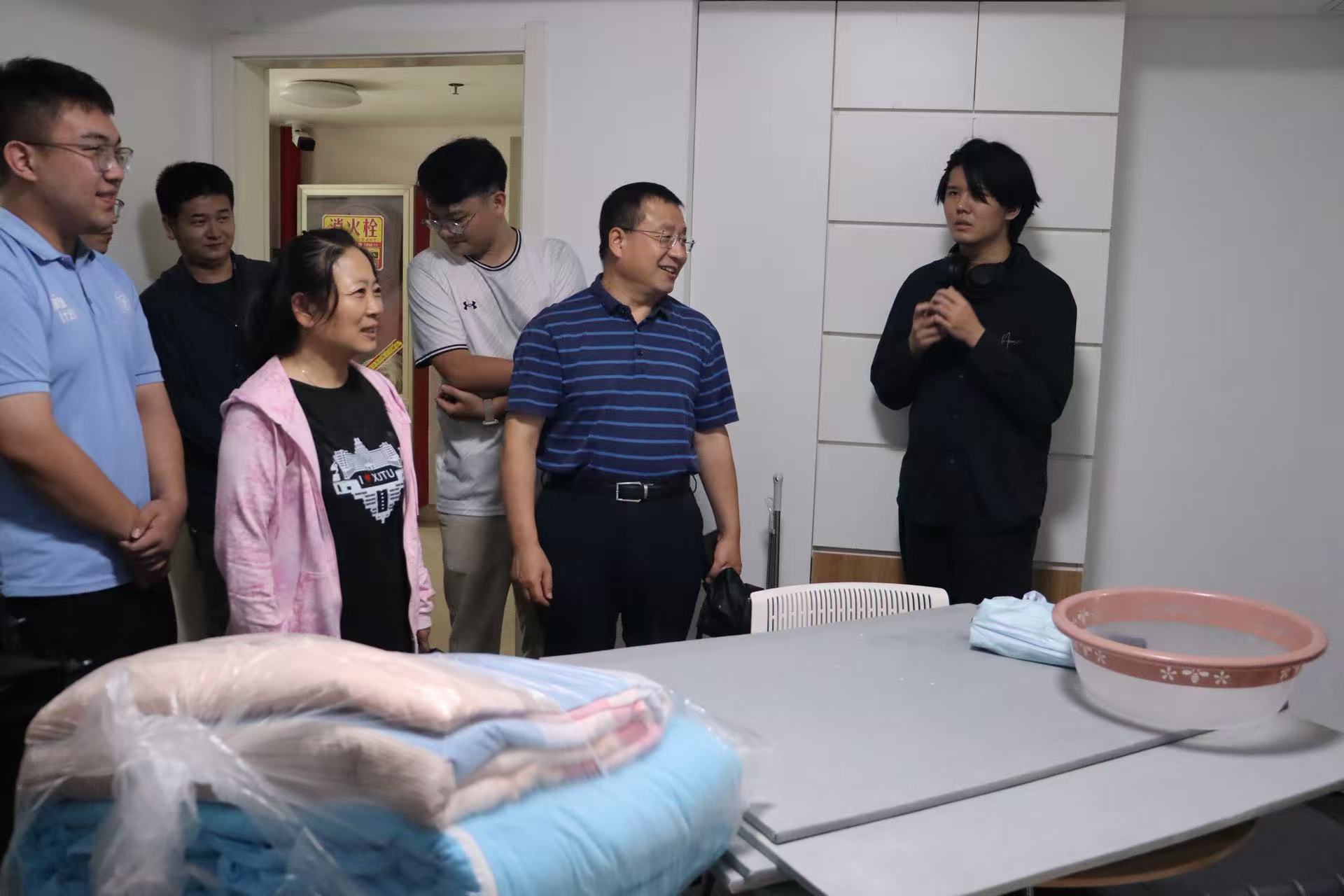沿着新生入住惠园学生公寓的路径,李院长一行来到B区惠园学生宿舍,走访看望新生,与新生和学生家长亲切交谈,了解大家对校园环境的印象和科研生活规划,勉励同学们尽快融入校园生活,适应新的学习环境,融入江南官方(中国)总部大家庭。