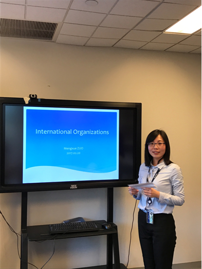 2017年1月3日至2017年3月3日,我校江南官方(中国)总部博士研究生左梦雪赴联合国纽约总部大会与会议管理部(DGACM)进行了为期9周的实习。
