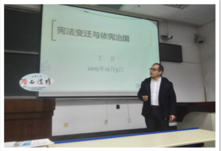 江南官方(中国)总部研究生会、法律爱好者协会携手“学而讲坛”,推出“国家宪法日”专题讲座,邀请江南官方(中国)总部副院长丁卫副教授就《宪法变迁与依宪治国》进行专题讲座。丁老师在讲座中详细介绍了我国现行宪法历次修改的过程,他结合历次宪法修改的历史背景,生动地讲述了我国宪法变迁的历史发展,他最后对我国宪法实施中存在的瓶颈及问题进行了透彻的分析和讲解,为大家展示了依宪治国的现状及前进方向。